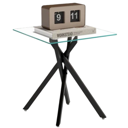 Стекло 6 мм, ножки Х-образные металлические. Компактный - для гостиной или у кровати. Собирается за 5 минут. В спальню себе взяла - телефон, кружку, книжку поставить. Симпатичный, не громоздкий. Цена отличная.