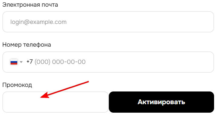 - Введите промокод в специальное поле и нажмите «Активировать»