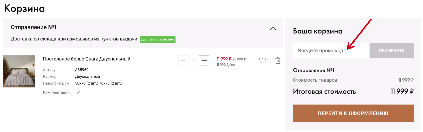 - Когда будете готовы оформить заказ, перейдите в корзину: https://cozyhome.ru/personal/cart