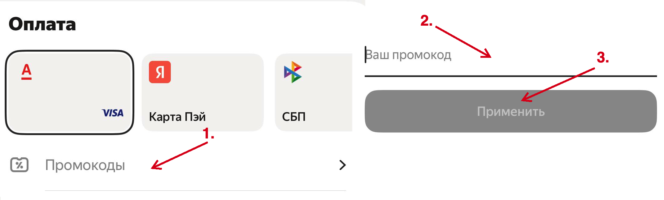 - Найдите поле «Промокод», нажмите на него, введите код и выберите «Применить», цена должна снизится.