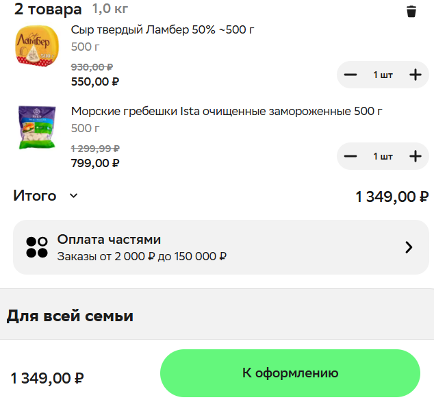 - Добавьте в корзину товары, которые планируете приобрести