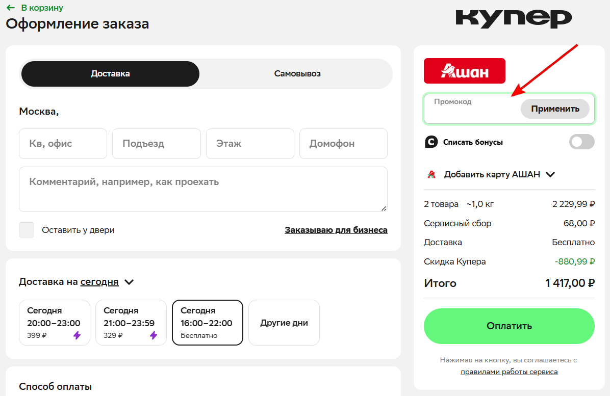 Как применить промокод?