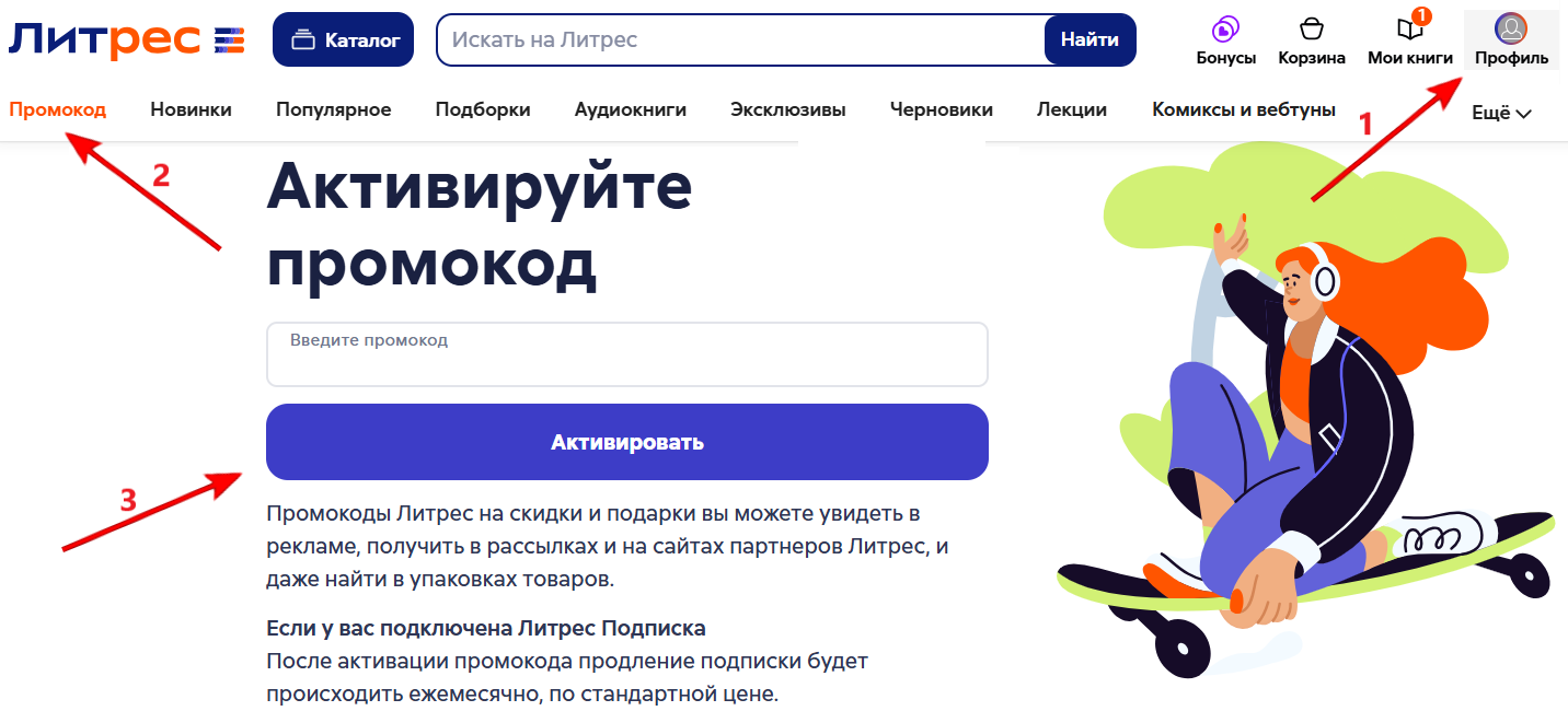 Как применить промокод в Литрес?
