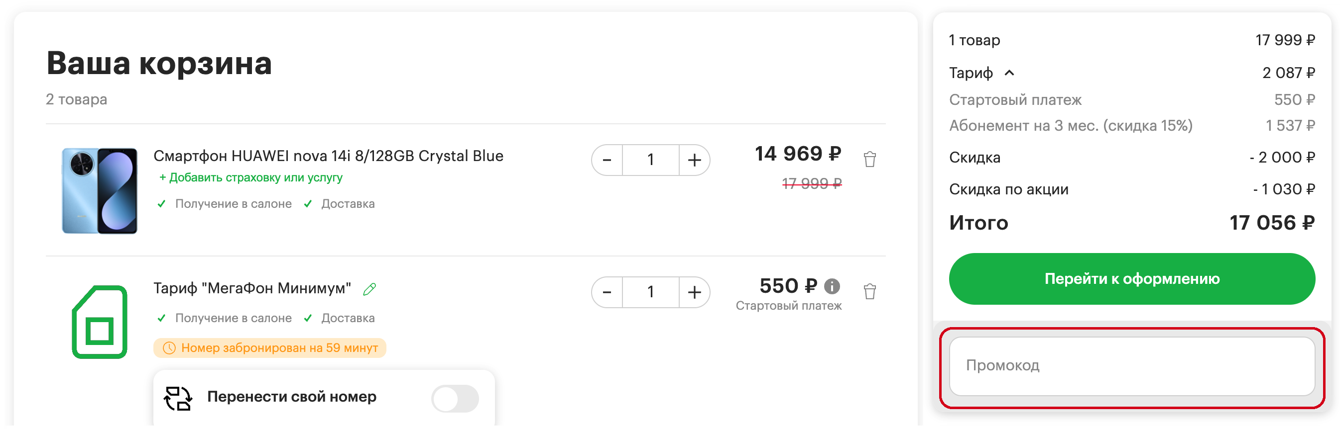- Когда будете готовы оформить заказ, перейдите в корзину: https://moscow.shop.megafon.ru/checkout