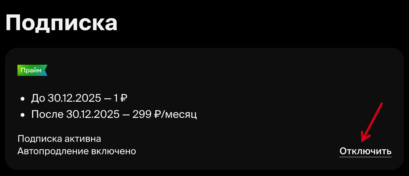Обратите внимание, что, отключив автопродление с пробной подпиской, вы потеряете доступ к контенту сервиса.