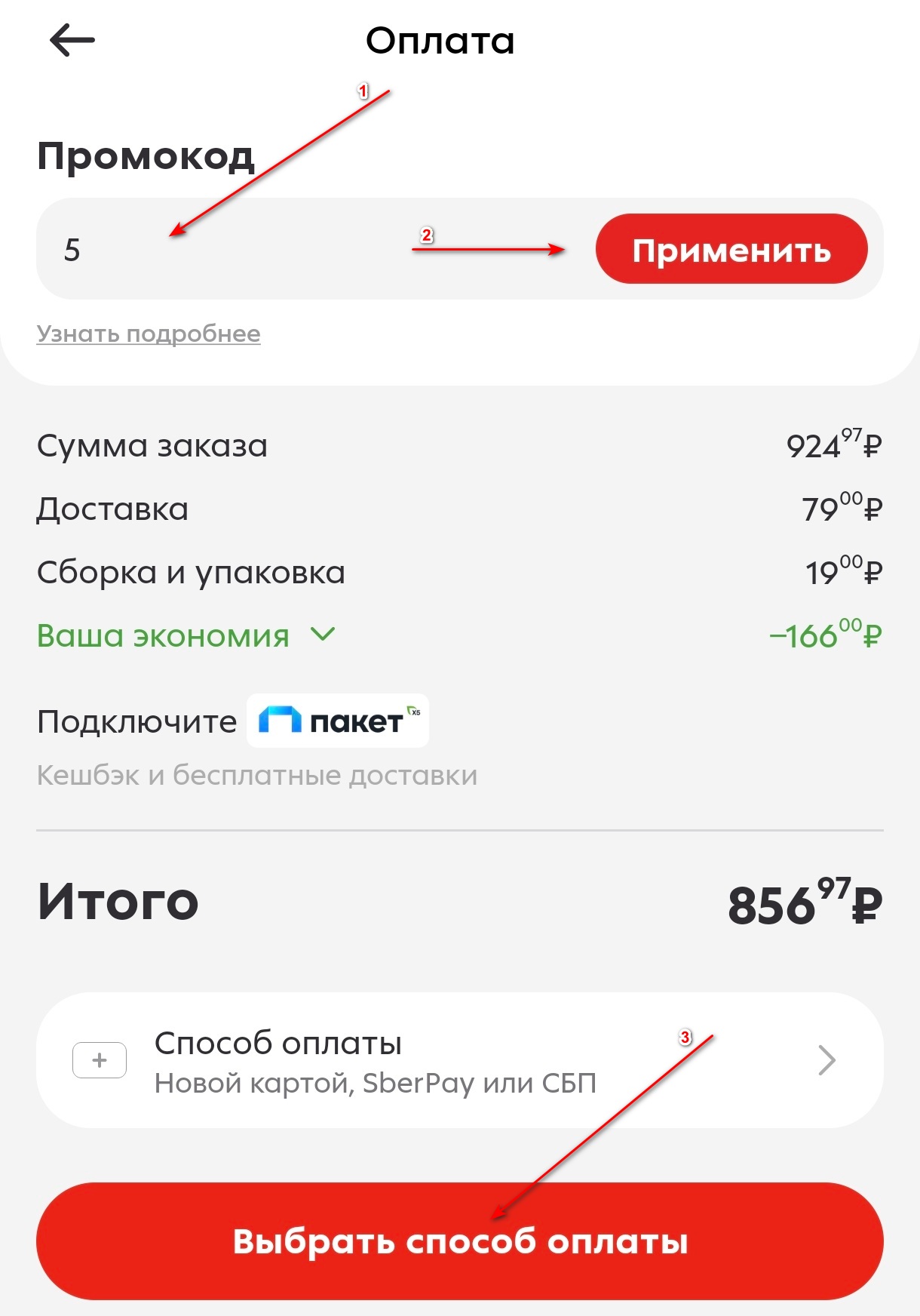 Как применить промокод в Пятёрочке?