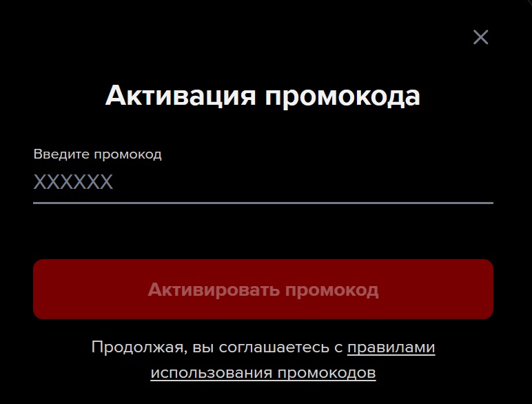 - Введите свой код в специальное поле и нажмите кнопку «Активировать промокод»