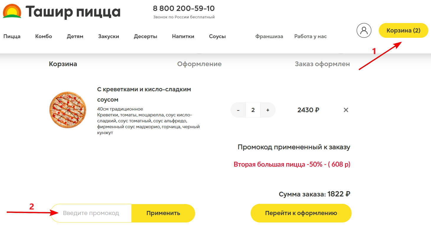 - Введите промокод в специальное поле и нажмите «Применить», цена должна измениться