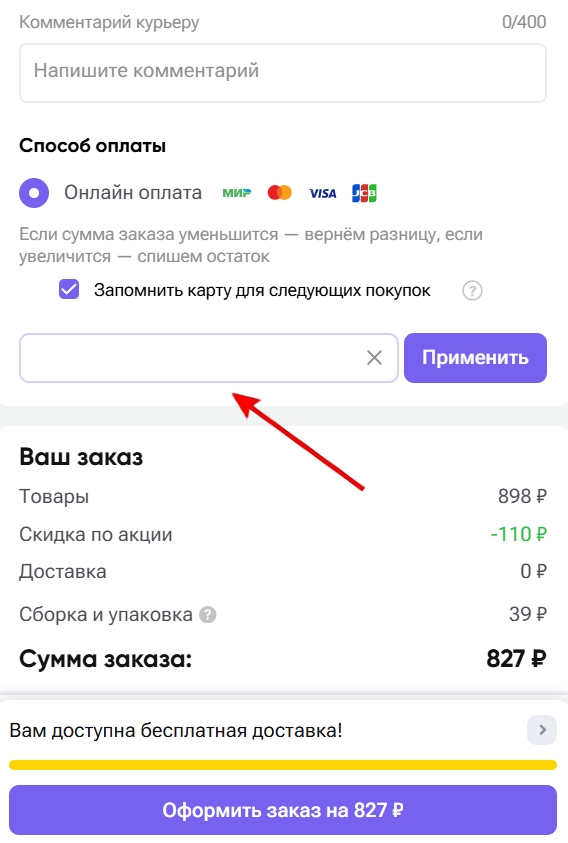 - Если скидка не применилась, проверьте условия его использования и сроки действия. Иногда бывают нюансы