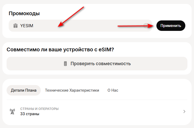 - Введите ваш промокод и нажмите кнопку «Применить»